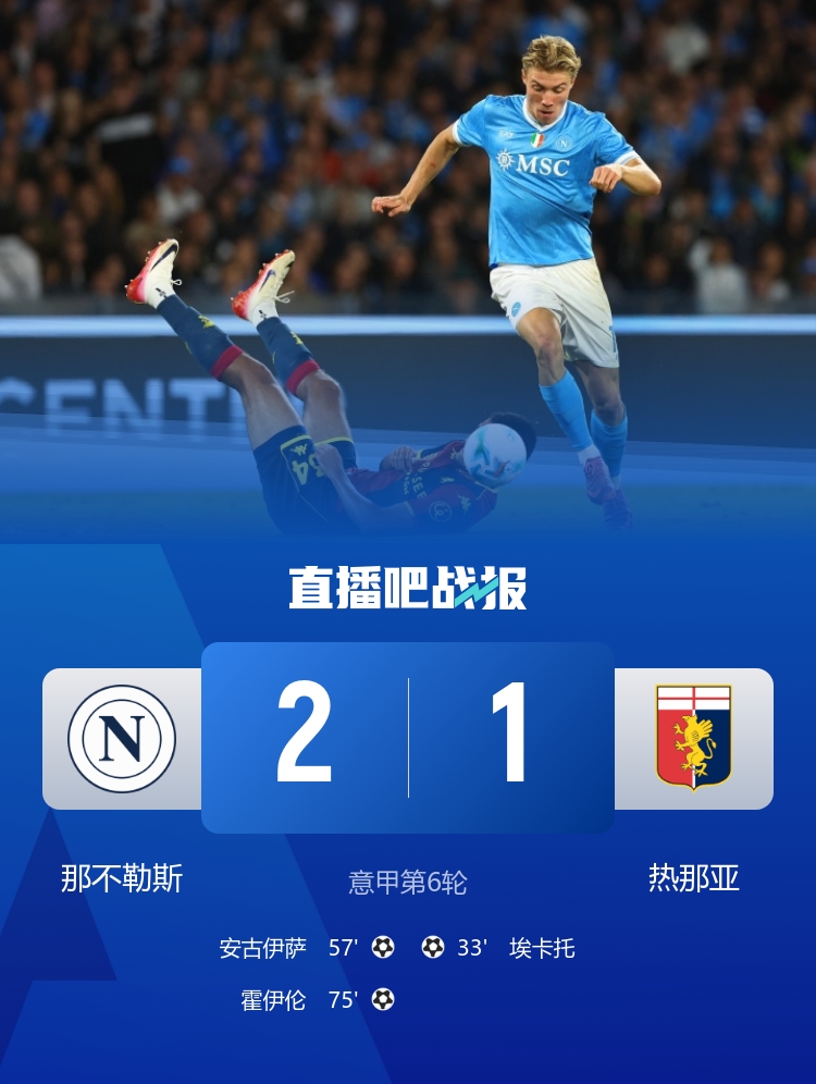 进入下半场后,比赛局势出现了变化。第57分钟,那不勒斯的安古伊萨在接到斯皮纳佐拉的传中后,抢在前点将皮球顶入球网,扳平了比分,双方战成1-1。这一进球激励了那不勒斯的士气,随后在第75分钟,安古伊萨的劲射虽然被对方门将扑出,但霍伊伦在小禁区内快速反应,成功补射得分,将比分反超为2-1。最终,比赛在这一比分上结束,那不勒斯以2-1逆转取胜。